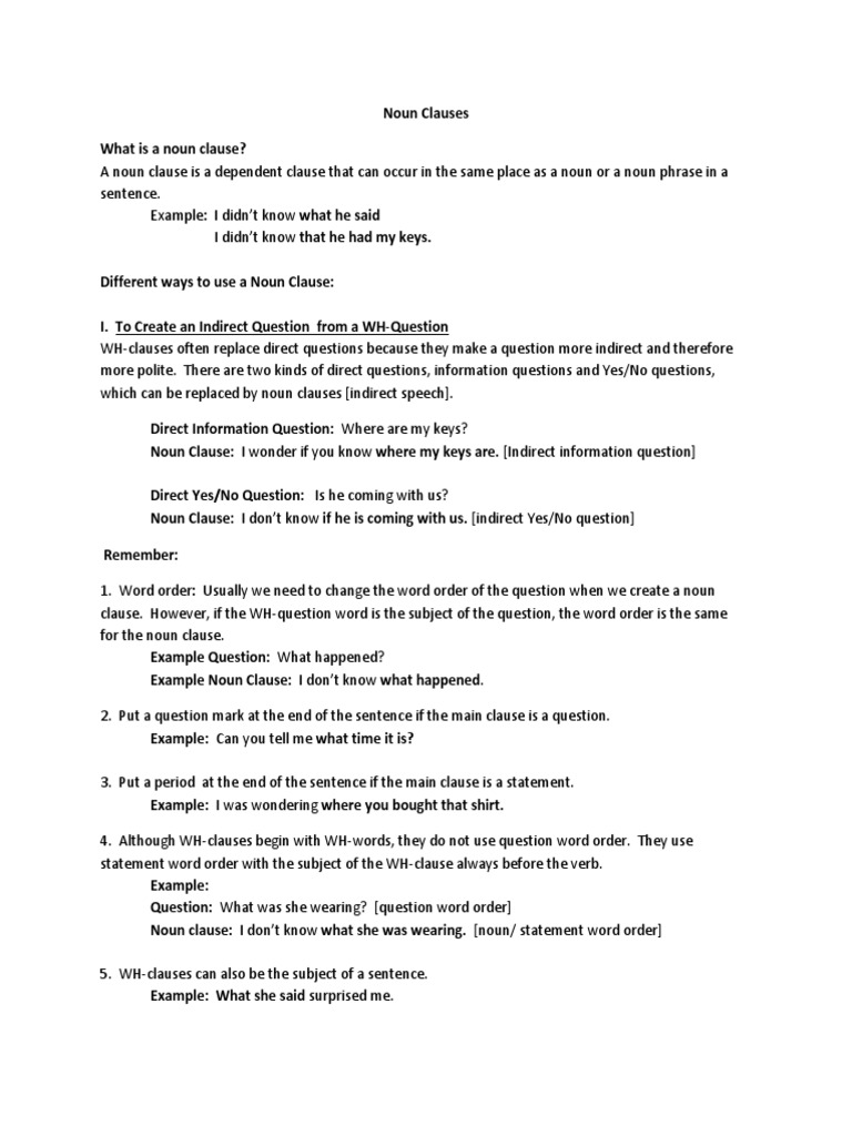Noun Clause Examples Pdf : Common nouns are more generalized by comparison, and they can be further divided into abstract, collective, compound, countable concrete, uncountable concrete and verbal.. A noun clause may have you questioning your grammar knowledge. A countable noun is a thing can be numbered or counted: And remember that to score at a band 6 or above for the grammatical range and accuracy criteria in the ielts writing marking, you must show that you are able to use complex. Common nouns are more generalized by comparison, and they can be further divided into abstract, collective, compound, countable concrete, uncountable concrete and verbal. Dec 21, 2020 · the term noun clause might sound confusing, but finding and identifying one is much easier than you might think.